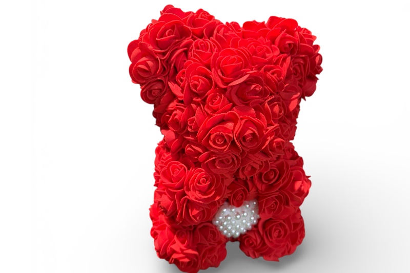Rozenbeer rood hart kraaltjes lengte 25 cm Deze beer van rode rozen is het mooiste cadeau voor uw geliefde.